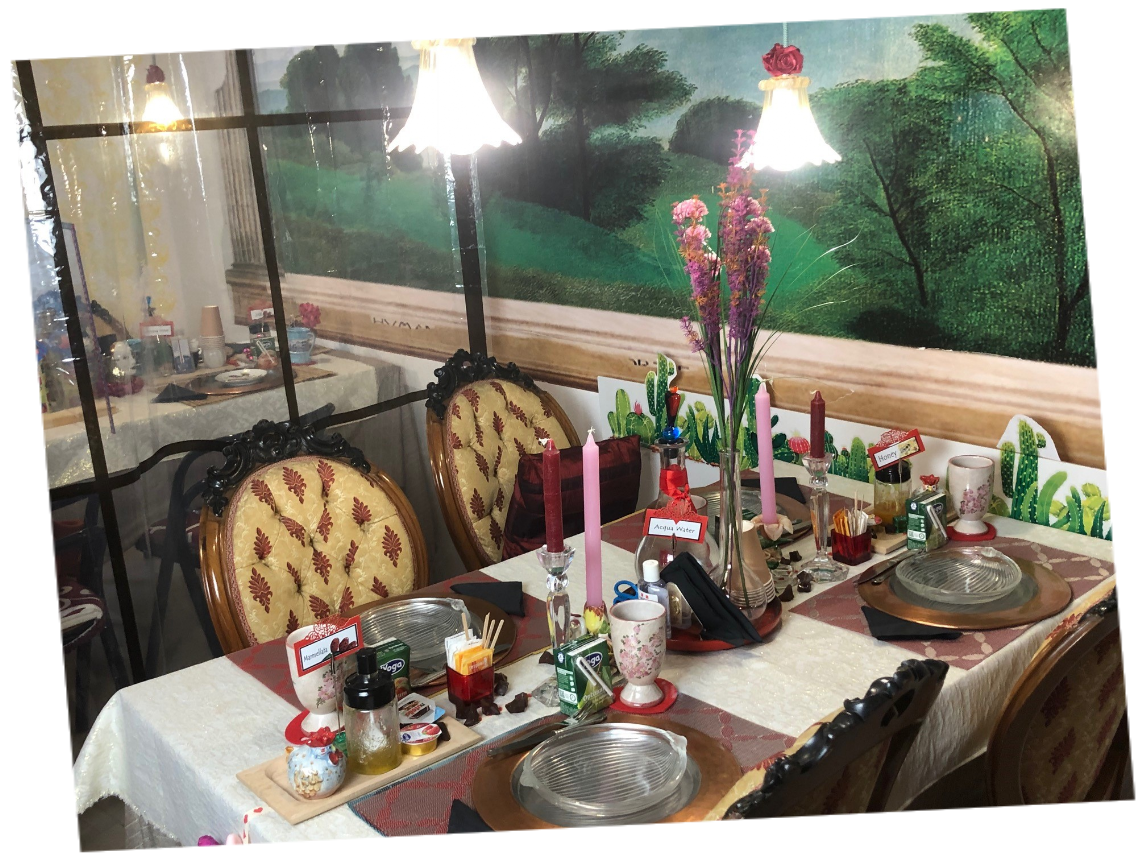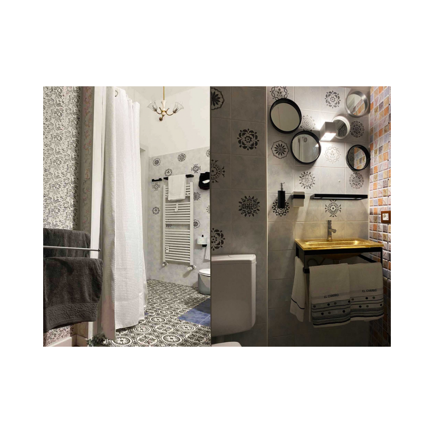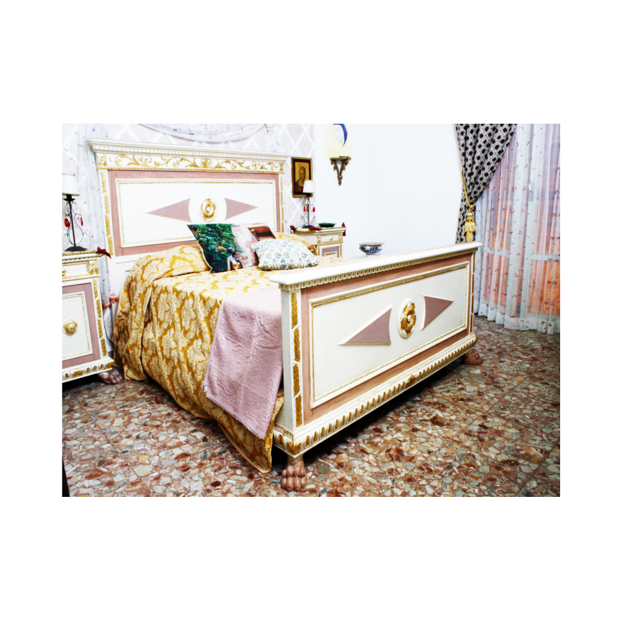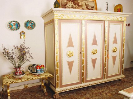 I mobili, risalenti ai primi anni del Novecento, erano marroni ed in ottimo stato di manuntezione: abete massello senza crepe. Sono stati sottoposti a trattamento antitarlo e ridipinti. I colori rosa-nocciola, bianco ed oro esprimono nobilità, ingenuità e giovinezza, assicurando una ricercata raffinatezza. Si abbinano, inoltre, molto bene ai pavimenti in graniglia, nuovamente lucidati, degli anni Sessanta.